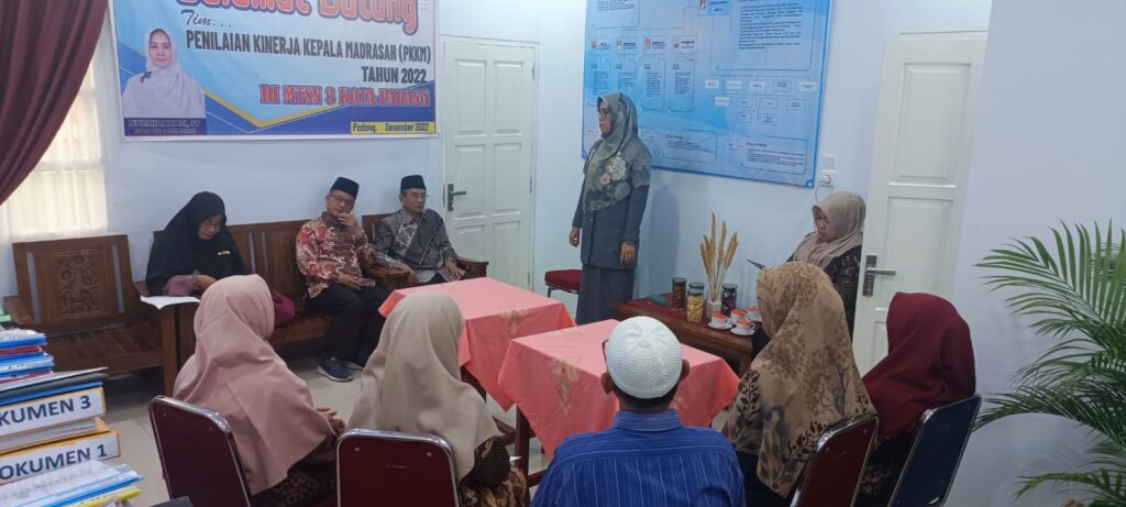 Dalam pelaksanaan Penilaian Kinerja Kepala Madrasah (PKKM), MTsN 3 Kota Padang mendapatkan jadwal penilaian pada hari Rabu, 7 Desember 2022. Untuk tim penilai adalah tim penilai dari Kemenag Kota Padang yaitu Kasi Bimbingan Masyarakat Islam Aris Junaidi, pengawas madrasah Ilda Peliana, dan Zulkifli Halim.