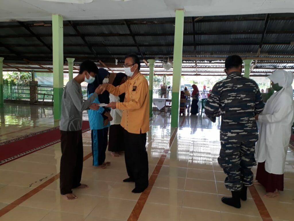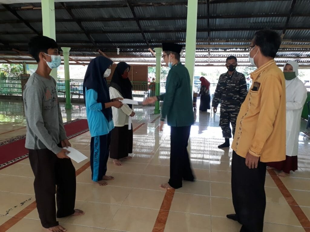 Padang, Humas – Santunan dari Lantamal diserahkan oleh Sertu Mardan yang diterima oleh pihak madrasah yang diwakili Restu Akmil di masjid Nurul Sakinah MTsN 3 Kota Padang. Santunan diberikan kepada siswa yang tidak mampu dan anak yatim sebanyak 10 orang siswa. Pihak madrasah yang diwakili oleh Kaur TU Drs. Restu Akmil menyampaikan terima kasih kepada pihak lantamal yang sudah berbagi kepada siswa MTsN 3 Kota Padang semoga berkah dan bisa dimanfaatkan pada hari raya nanti. (MN. Foto : SS)