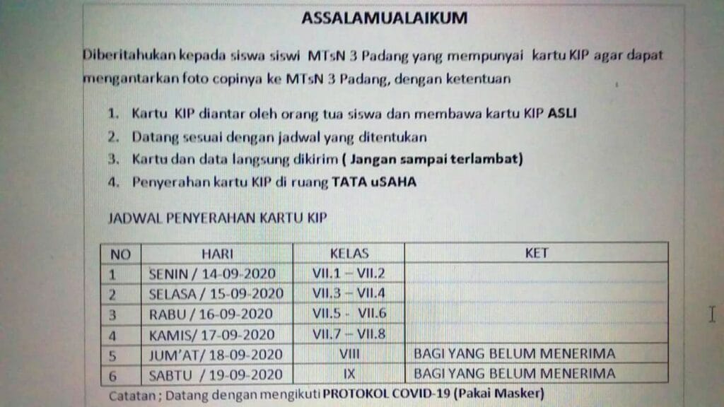 Diberitahukan kepada siswa-siswi yang telah menyerahkan surat keterangan tidak mampu ke madrasah, sudah bisa mengambil...