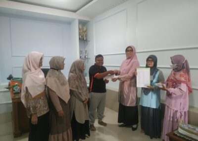 Padang, Humas – Kepala Madrasah Nurhidayati, S.T menyerahkan THR kepada 25 orang GTT dan PTT di lingkungan MTsN 3 Kota Padang pada hari Sabtu, tanggal 23 April 2022 pada pukul 11.00 WIB bertempat di ruangan kepala madrasah.