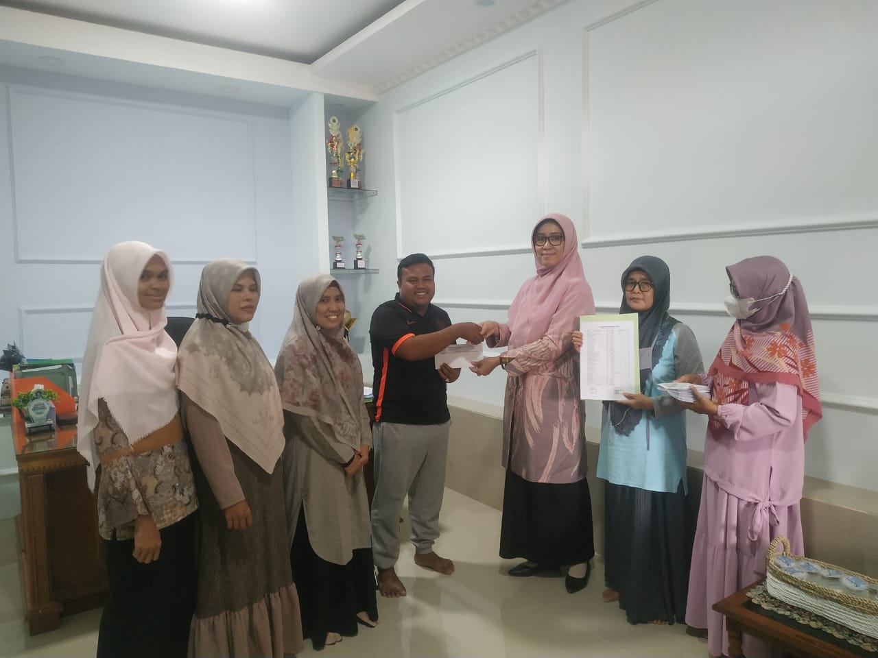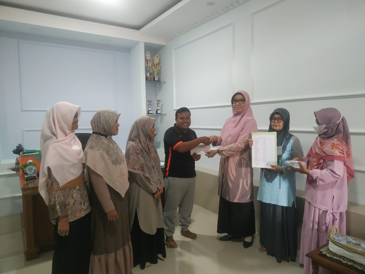 Padang, Humas – Kepala Madrasah Nurhidayati, S.T menyerahkan THR kepada 25 orang GTT dan PTT di lingkungan MTsN 3 Kota Padang pada hari Sabtu, tanggal 23 April 2022 pada pukul 11.00 WIB bertempat di ruangan kepala madrasah.
