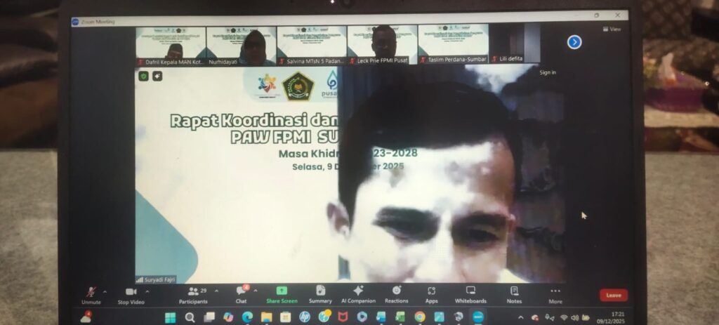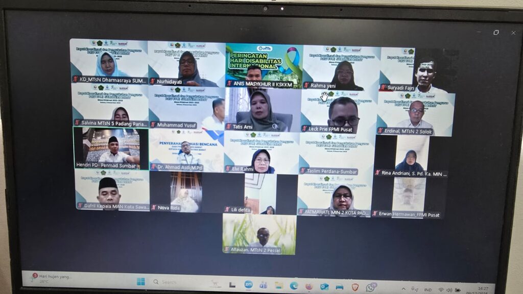 Padang, Humas — Upaya memperluas layanan pendidikan inklusif di madrasah kembali ditegaskan melalui pelantikan Pengurus Forum Pendidik Madrasah Inklusif (FPMI) Sumatera Barat Pergantian Antar Waktu (PAW) masa khidmat 2023–2028 yang digelar secara virtual. Prosesi pelantikan dipimpin langsung oleh Ketua Umum FPMI Pusat, Dr. Leck Prie, yang menekankan bahwa pendidikan inklusif merupakan amanat perjuangan pendidikan nasional yang harus diwujudkan bersama.