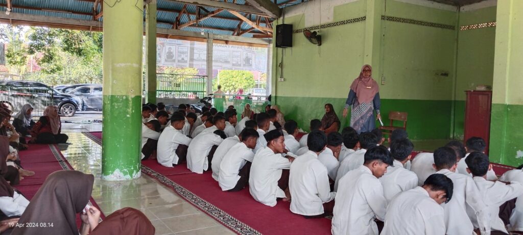 Padang, Humas – Kepala Madrasah, Nurhidayati, mengambil langkah proaktif dalam mempersiapkan siswa kelas IX untuk acara penting dalam kurikulum madrasah. Pada hari Jum’at, 19 April 2024, pukul 08.00 WIB, beliau memberikan arahan langsung kepada seluruh siswa dalam rangka menyusun Pagelaran Seni sebagai bagian dari akhir Program Belajar Mengajar (PBM) bidang studi Seni Budaya.