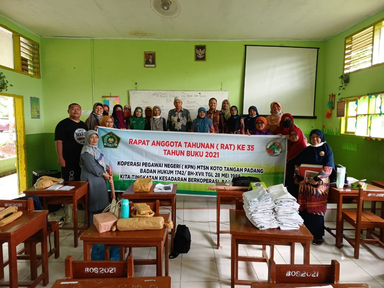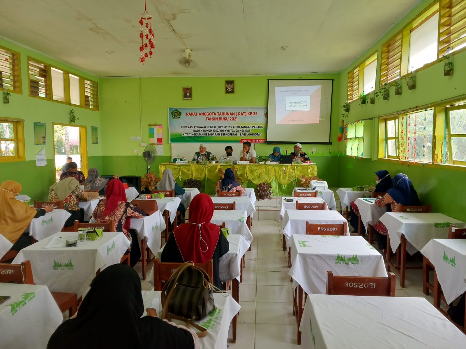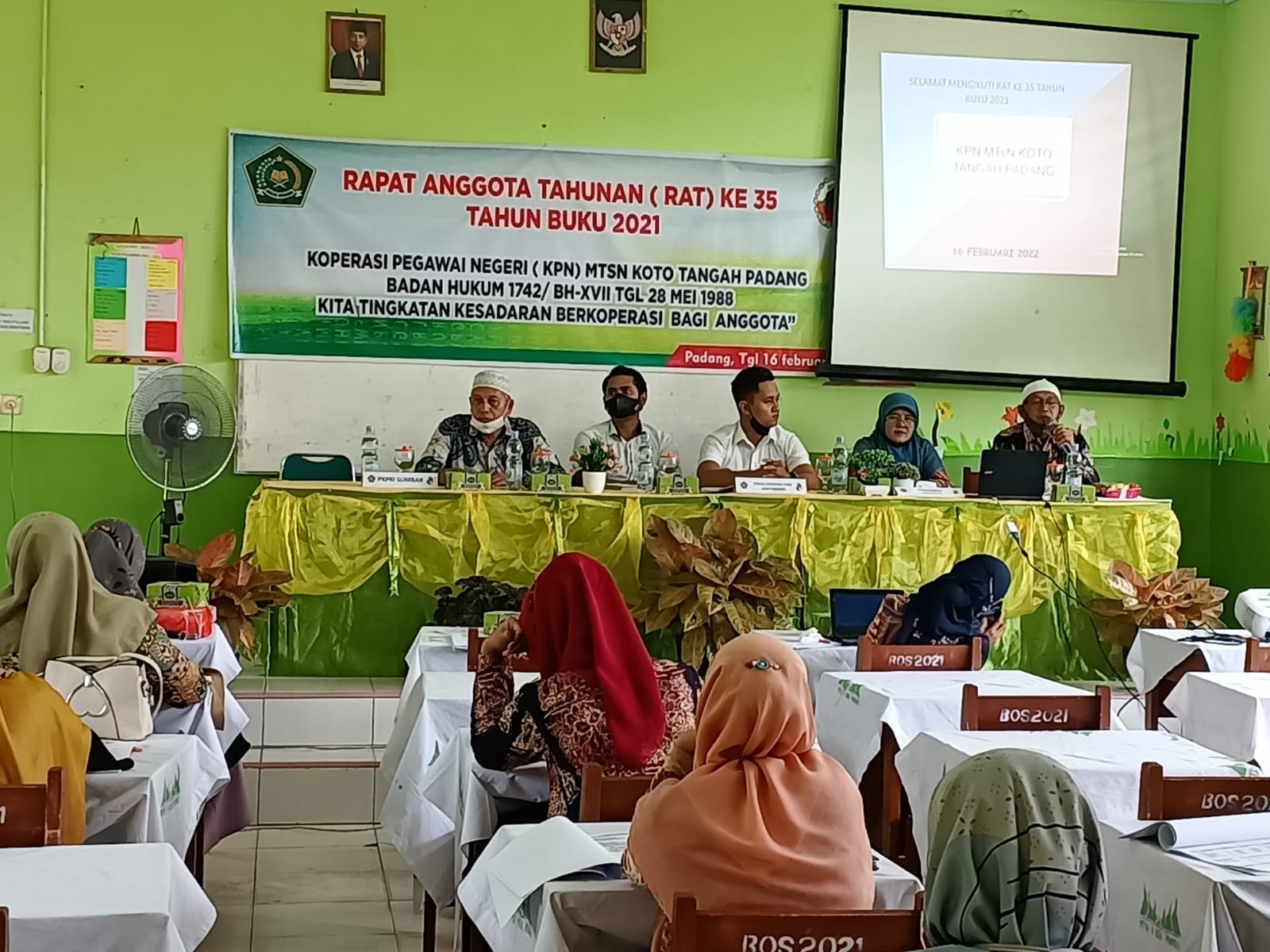 Rapat Anggota Tahunan (RAT) Koperasi MTsN Koto Tangah tahun buku 2021 tersebut dihadiri oleh unsur pimpinan, pengawas, pengurus, dan anggota.