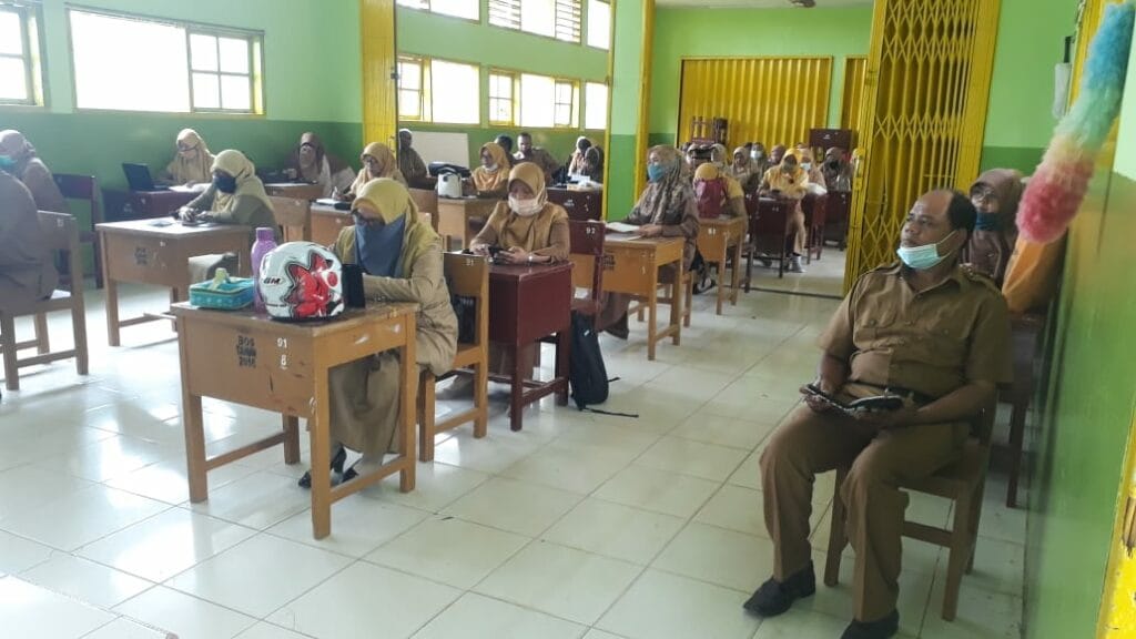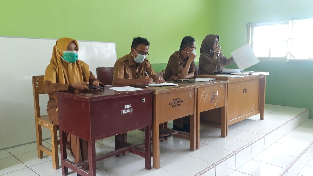 Padang – Kegiatan hari ini Senin 4 Januari 2021 kepala MTsN 3 Kota Padang Nurhidayati, ST memimpin rapat dinas guru dan pegawai dalam rangka penerapan SOP pembelajaran tatap muka tahun 2020/2021. Disamping itu evaluasi pembelajaran semester ganjil, penerimaan dan siswa yang mendapat perhatian khusus. (SS. Foto : SS)