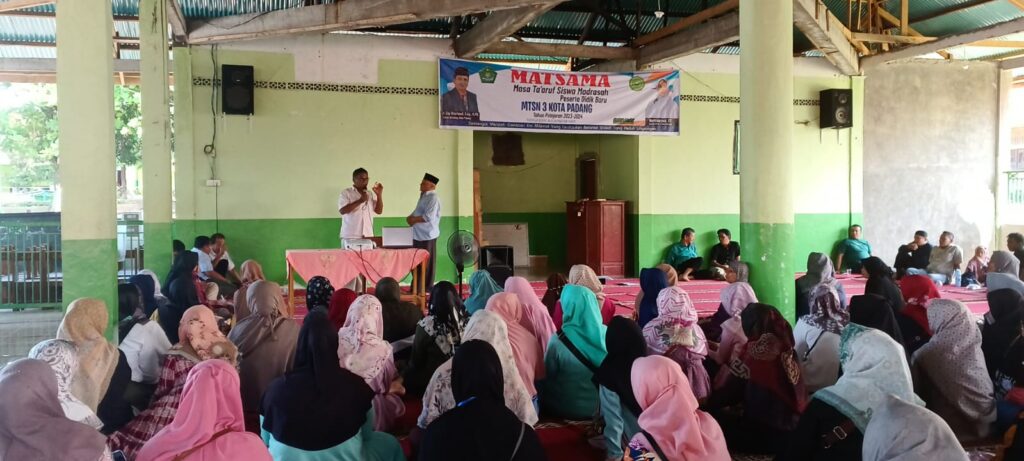 Padang, Humas – Rapat komite di adakan dalam rangka pertemuan ramah tamah dengan para wali/orang tua murid dan dihadiri oleh kepala madrasah Nurhidayati dan ketua komite Esrizal serta pengurus komite MTsN 3 Kota Padang di Masjid Nurus Sakinah, Sabtu (22/07).