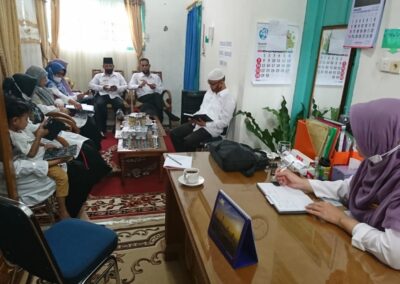 Padang, Humas – Kegiatan setelah upacara bendera unsur pimpinan melakukan rapat koordinasi dengan tim Keagamaan MTsN 3 Kota Padang. Rapat ini bertujuan untuk mematangkan persiapan pembinaan peserta didik ditahun 2021, sejalan dengan visi dan misi madrasah di tahun 2022 “Cerdas, Beramal shaleh dan Peduli lingkungan”. Dalam pemaparannya oleh Bapak Zainul Arif, S.Pd.I sebagai ketua tim memiliki program antara lain :