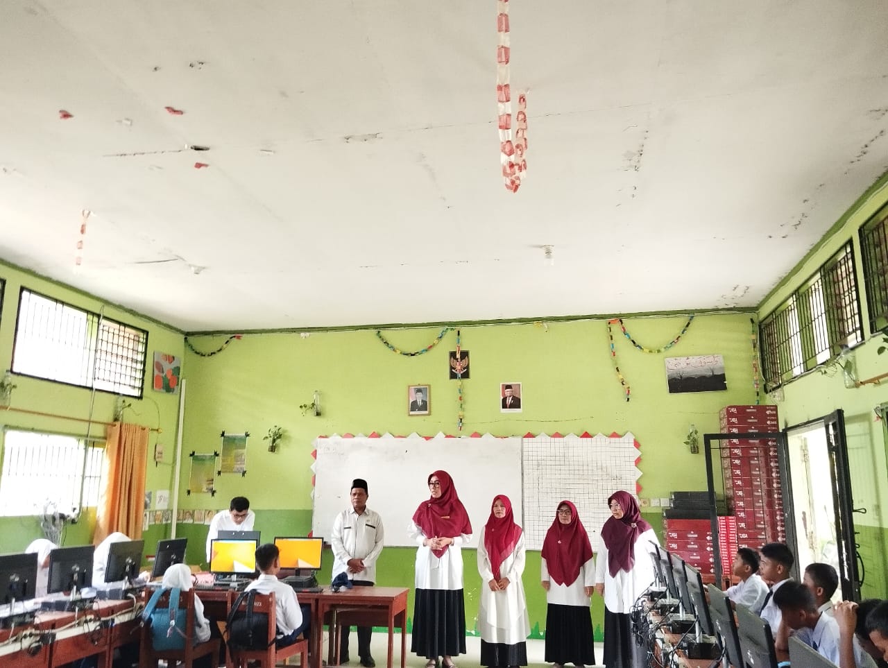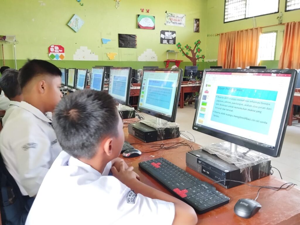 Uji coba program pembelajaran kelas digital yang dibuka oleh Kepala Madrasah MTsN 3 Kota Padang turut didampingi oleh Wakil Kurikulum, Wakil Sarana dan Prasarana, Guru TIK, dan beberapa guru MTsN 3 yang akan mengajar di kelas digital nantinya. Sementara itu pembelajaran pertama dalam pembukaan kelas digital hari ini diawali oleh Sendra, S.Pd selaku guru mata pelajaran Bahasa Indonesia dengan materi mengenai Teks Cerita Fantasi. (SW. Foto: SW)