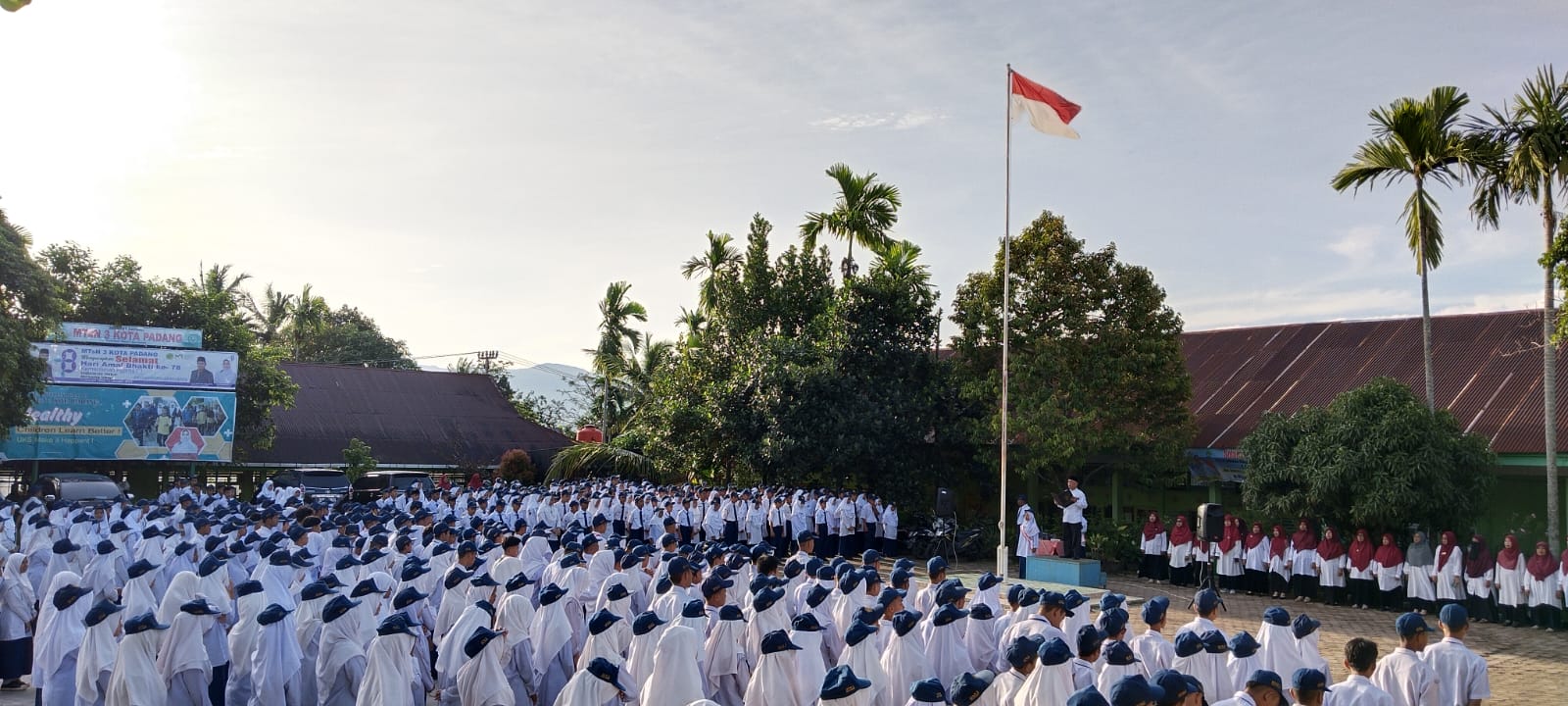 Padang, Humas – Dalam semangat baru menuju semester genap, Madrasah Tsanawiyah Negeri 3 Kota Padang menggelar upacara bendera perdana dengan penuh semangat di tengah cuaca cerah yang menyinari kegiatan tersebut, melalui pembina upacara waka kesiswaan, Ramli, Senin (08/01).
