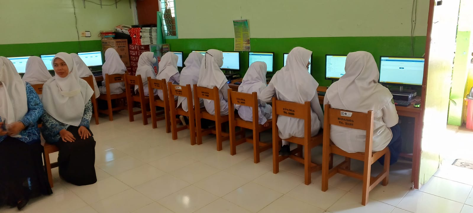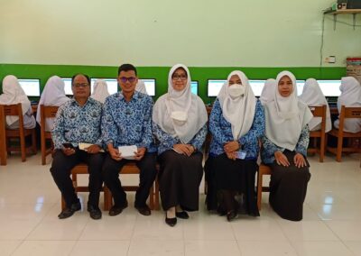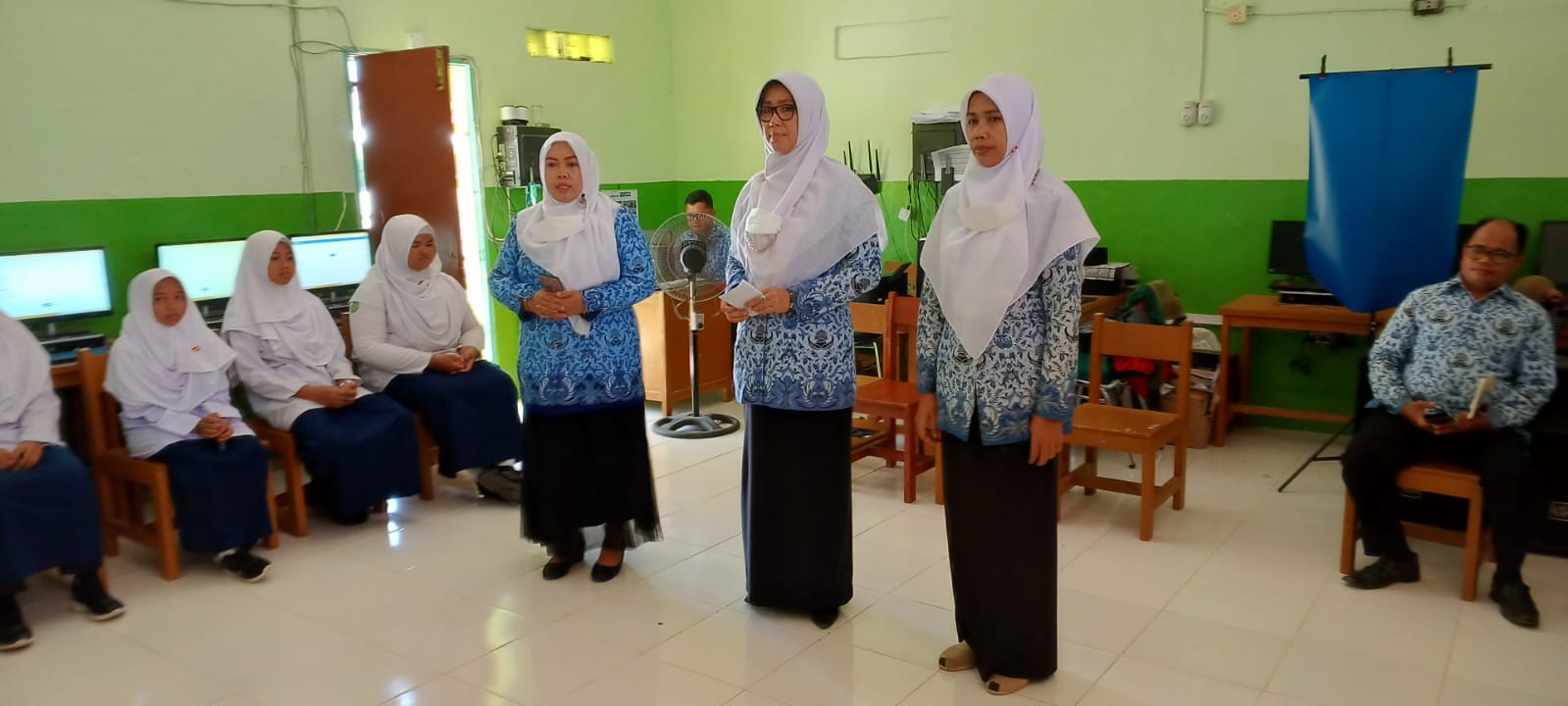 Kepala Madrasah Nurhidayati di dampingi KAUR TU Desi Arisanti meberikan arahan kepada seluruh peserta seleksi KSM sebelum dimulai. Dalam kesempatan tersebut hadir Waka kurikulum Melia bersama para pembina yang ikut mengawasi seleksi KSM tersebut.