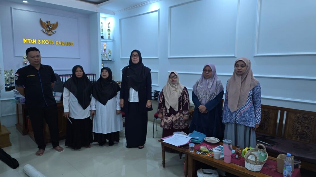 Padang, Humas – Kamis (30/10) ruang pertemuan Kepala MTsN 3 Kota Padang dipenuhi suasana serius tapi akrab. Kepala madrasah bersama para guru tengah berdiskusi hangat dengan pengawas madrasah. Namun, tepat pukul 10.00 WIB, suara dari pengeras sekolah terdengar jelas: instruksi untuk menyanyikan lagu Indonesia Raya.