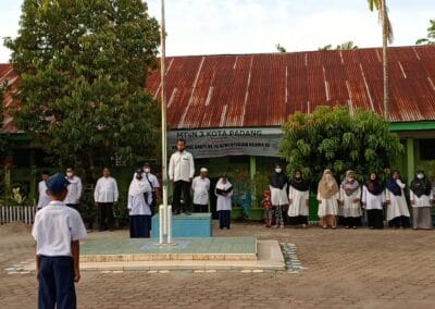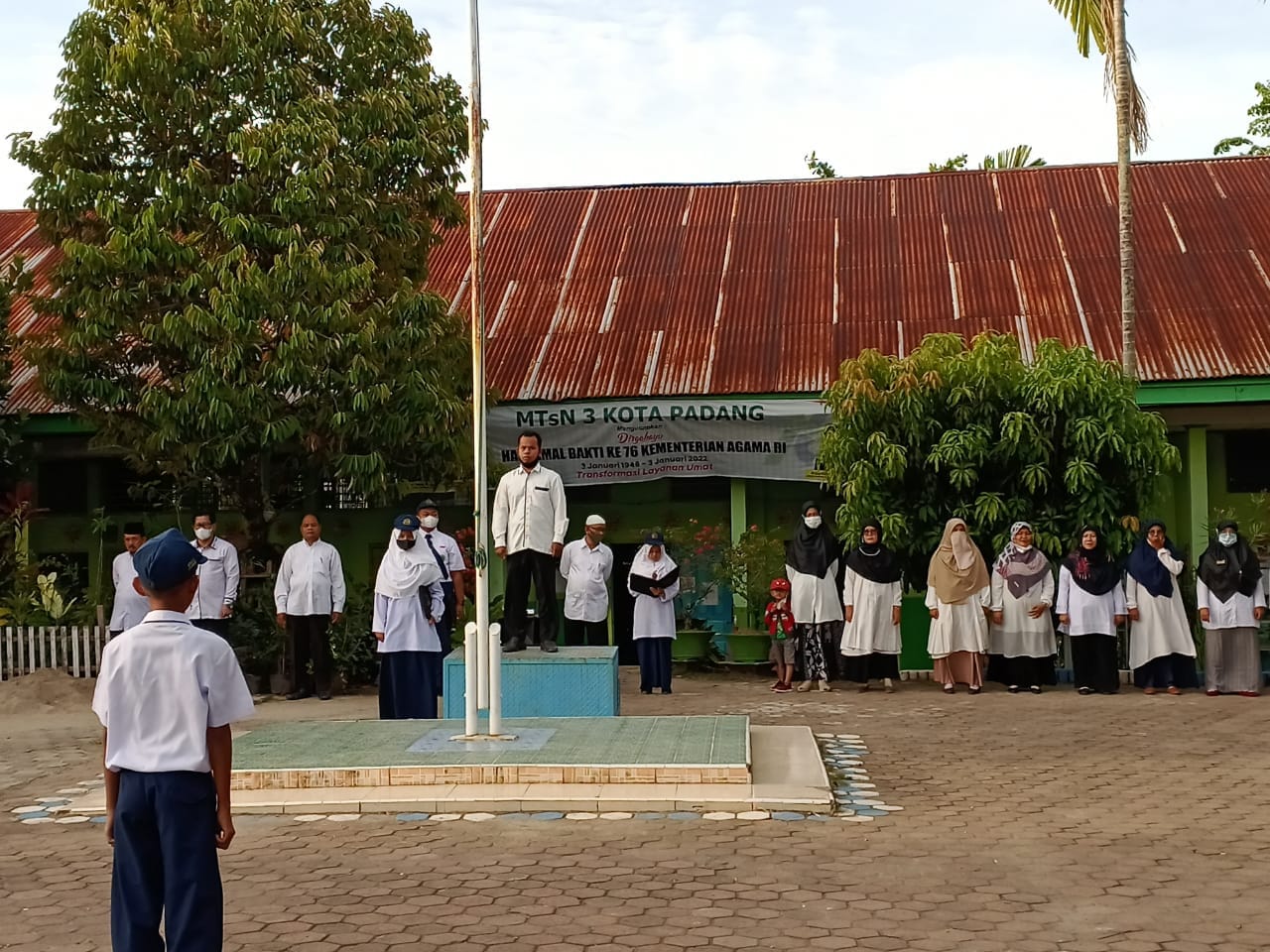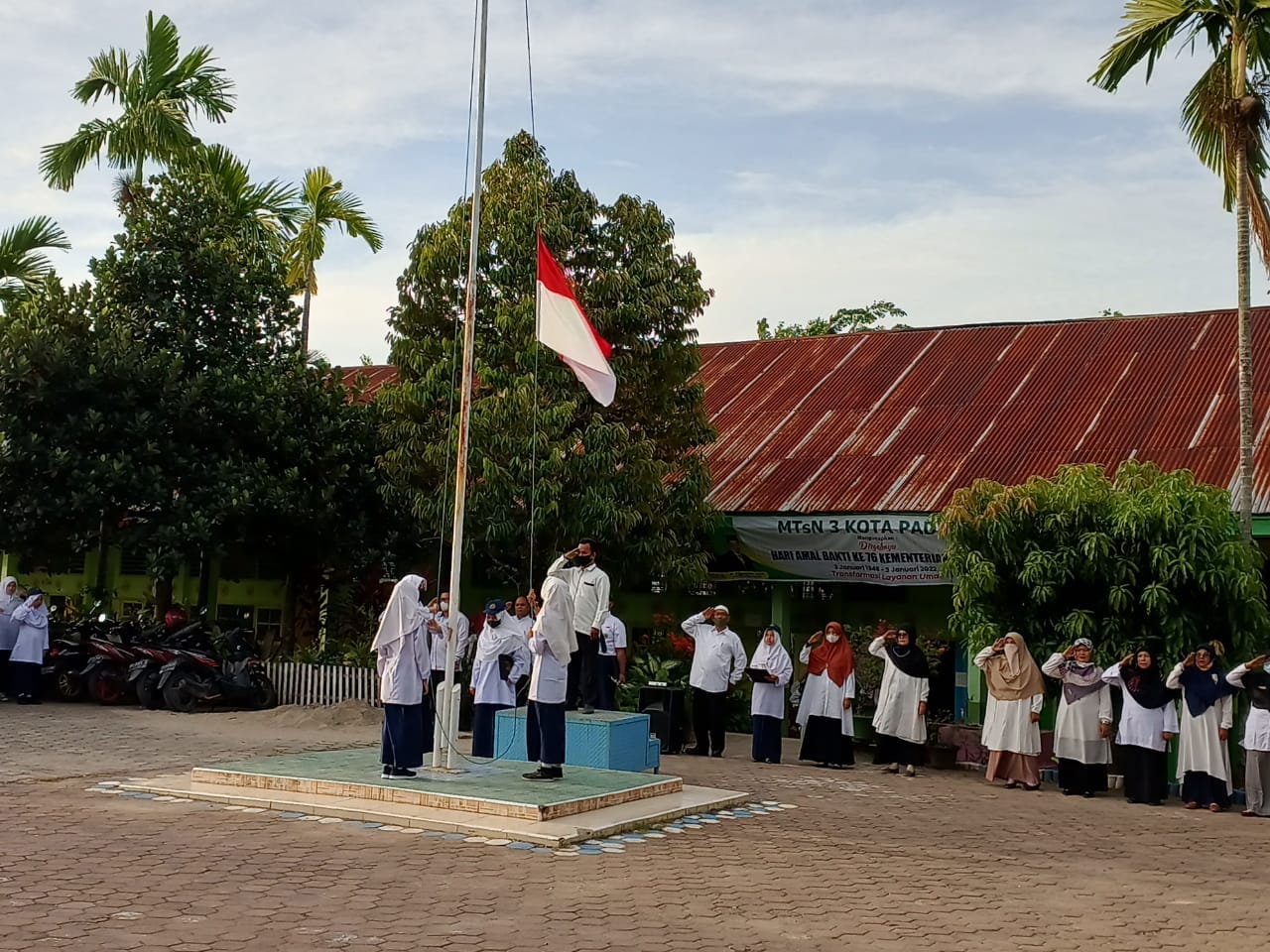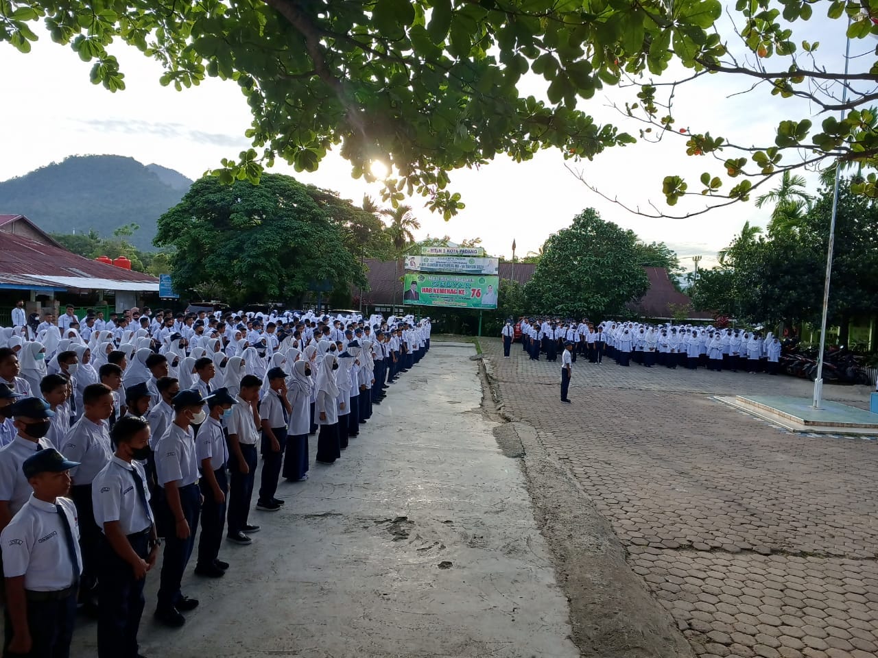 Padang, Humas – MTsN 3 Kota Padang melaksanakan Upacara Bendera hari Senin, tanggal 14 Februari 2022 dimulai tepat pada pukul 07.00 WIB di Lapangan MTsN 3 Kota Padang. Melaksanakan Upacara Bendera sebagai salah satu bentuk kegiatan penghormatan kepada pejuang kemerdekaan dan juga sebagai bentuk cinta NKRI.