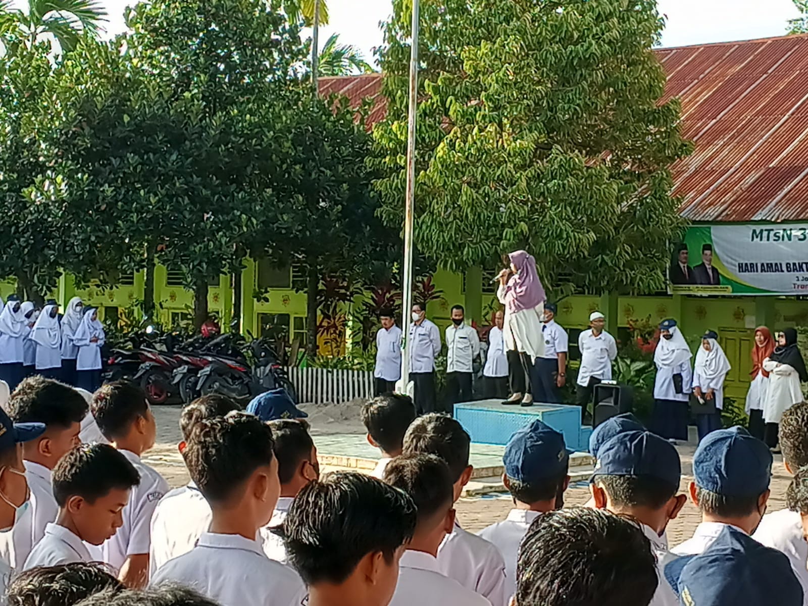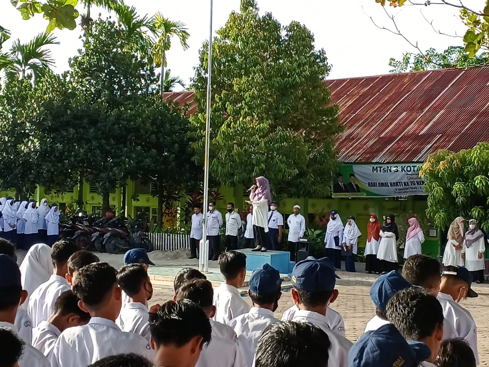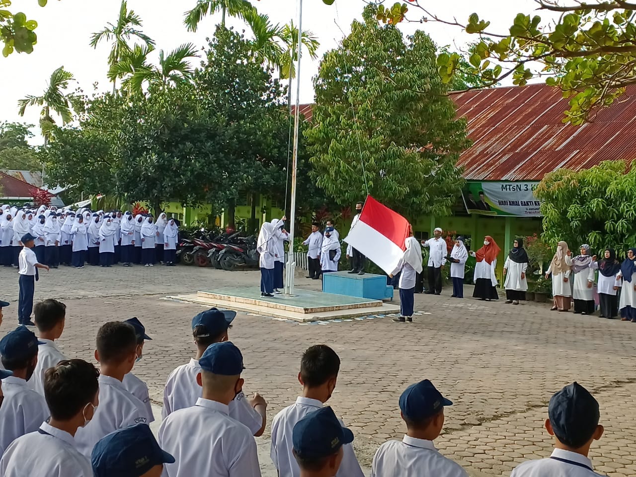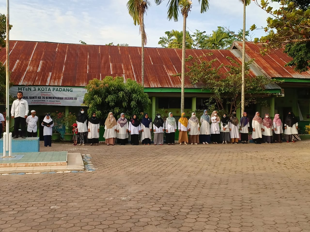 Padang, Humas – MTsN 3 Kota Padang melaksanakan Upacara Bendera hari Senin, tanggal 14 Februari 2022 dimulai tepat pada pukul 07.00 WIB di Lapangan MTsN 3 Kota Padang. Melaksanakan Upacara Bendera sebagai salah satu bentuk kegiatan penghormatan kepada pejuang kemerdekaan dan juga sebagai bentuk cinta NKRI.