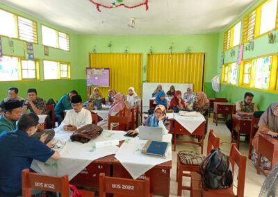 Acara di mulai dengan arahan dari Melia S., M.Pd, M.Pmat selaku wakil kepala bidang kurikulum menyampaikan bahwa Pembelajaran madrasah ini di harapkan bisa berkembang dengan baik dan diharapkan ada perbaikan kinerja kita supaya menjadi lebih baik. Untuk penampilan kita dalam pembelajaran harus ada perbaikan sehingga dapat dipandang baik oleh wali peserta didik dan masyarakat pada umumnya dimulai dari hal yang terkecil seperti pembuatan soal, dalam pembelajaran lebih ditingkatkan penyampaian materinya. Selain itu beliau juga mengingatkan dalam pembuatan soal jangan sampai mengandung unsur SARA. (MN. Foto : MN)