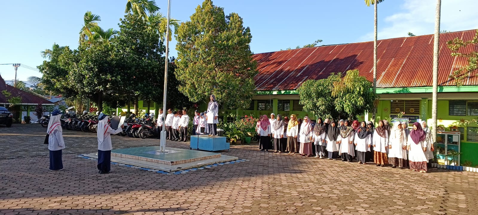 Upacara yang dihadiri  Plt. Kaur TU Yurnita, semua unsur pimpinan, guru dan pegawai itu berlangsung sangat khidmat, dan tertib.