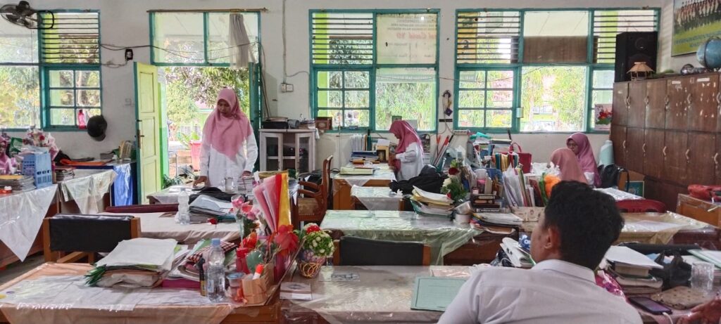 Padnag, Humas – Senin, 5 Mei 2025 pukul 07.50 WIB, Wakil Kepala Madrasah Bidang Kurikulum MTsN 3 Kota Padang, Hj. Melia S, memimpin briefing rutin bersama para guru di ruang guru madrasah. Kegiatan ini menjadi momen penting untuk menyampaikan berbagai informasi strategis terkait agenda akademik yang sedang dan akan berlangsung. Suasana briefing berlangsung tertib dan penuh perhatian, di mana seluruh guru mendengarkan arahan dengan seksama.