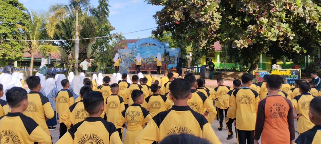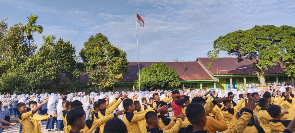 Padang, Humas – Rabu pagi, 16 Juli 2025, seluruh warga MTsN 3 Kota Padang kembali melaksanakan kegiatan rutin Senam Pagi sebagai bentuk komitmen dalam menjaga kebugaran jasmani. Kegiatan ini dilaksanakan di halaman madrasah dan diikuti dengan penuh semangat oleh seluruh guru, pegawai, serta siswa kelas VII hingga kelas IX. Senam pagi yang digelar setiap minggu ini bertujuan untuk membangun kebiasaan hidup sehat dan memperkuat daya tahan tubuh seluruh warga madrasah.
