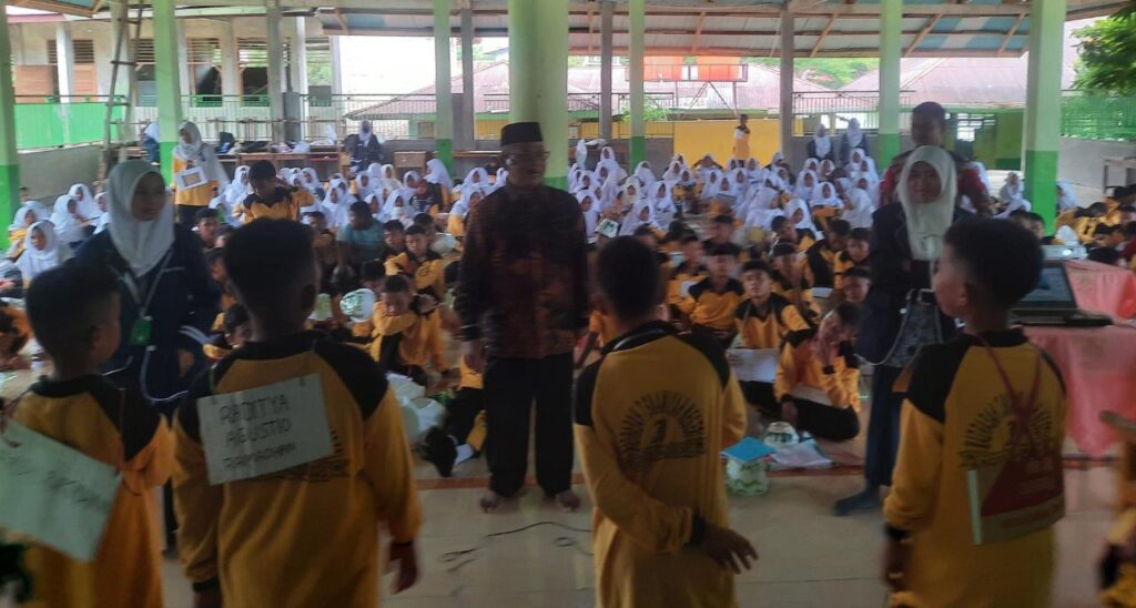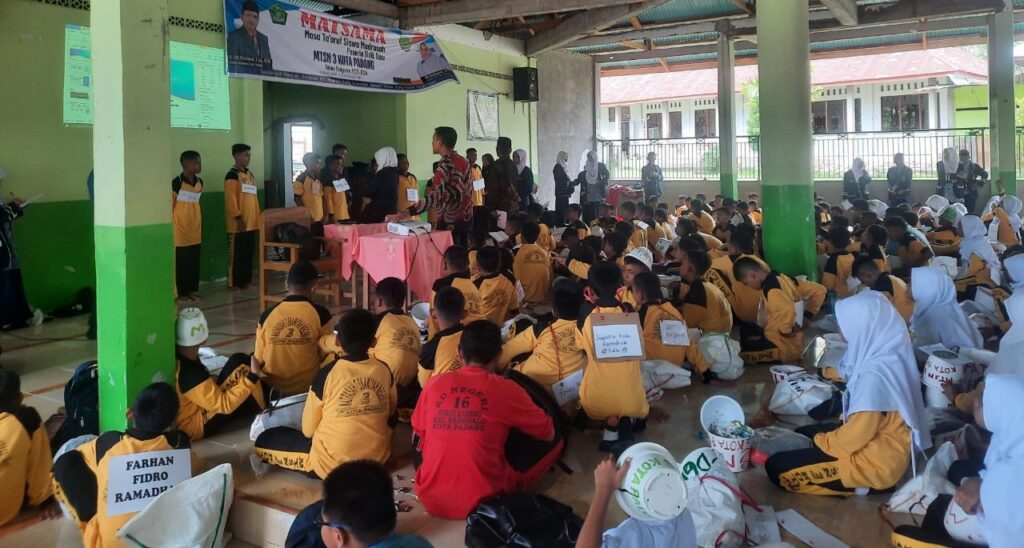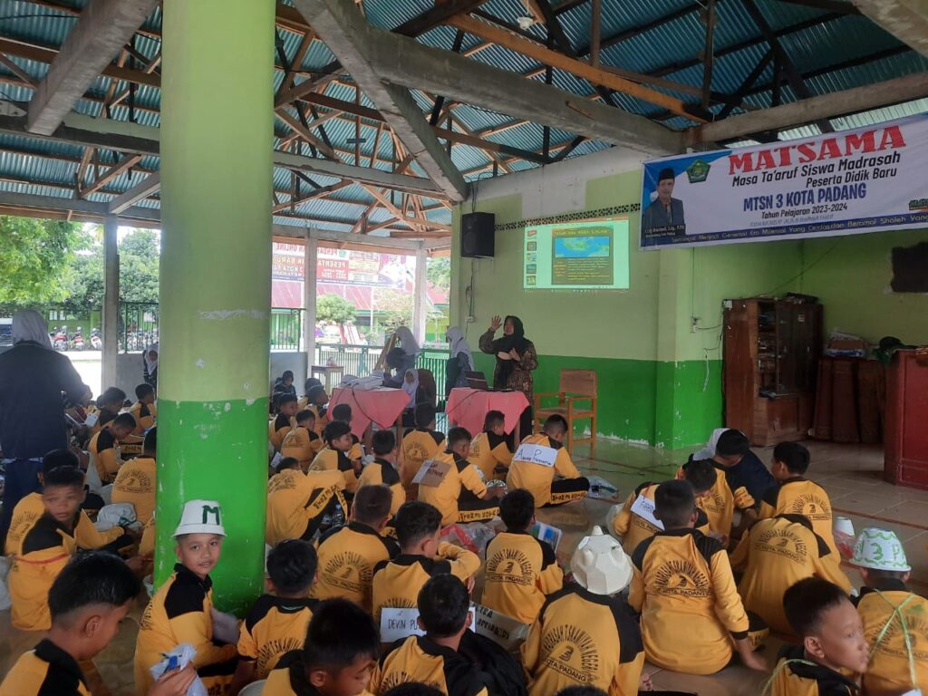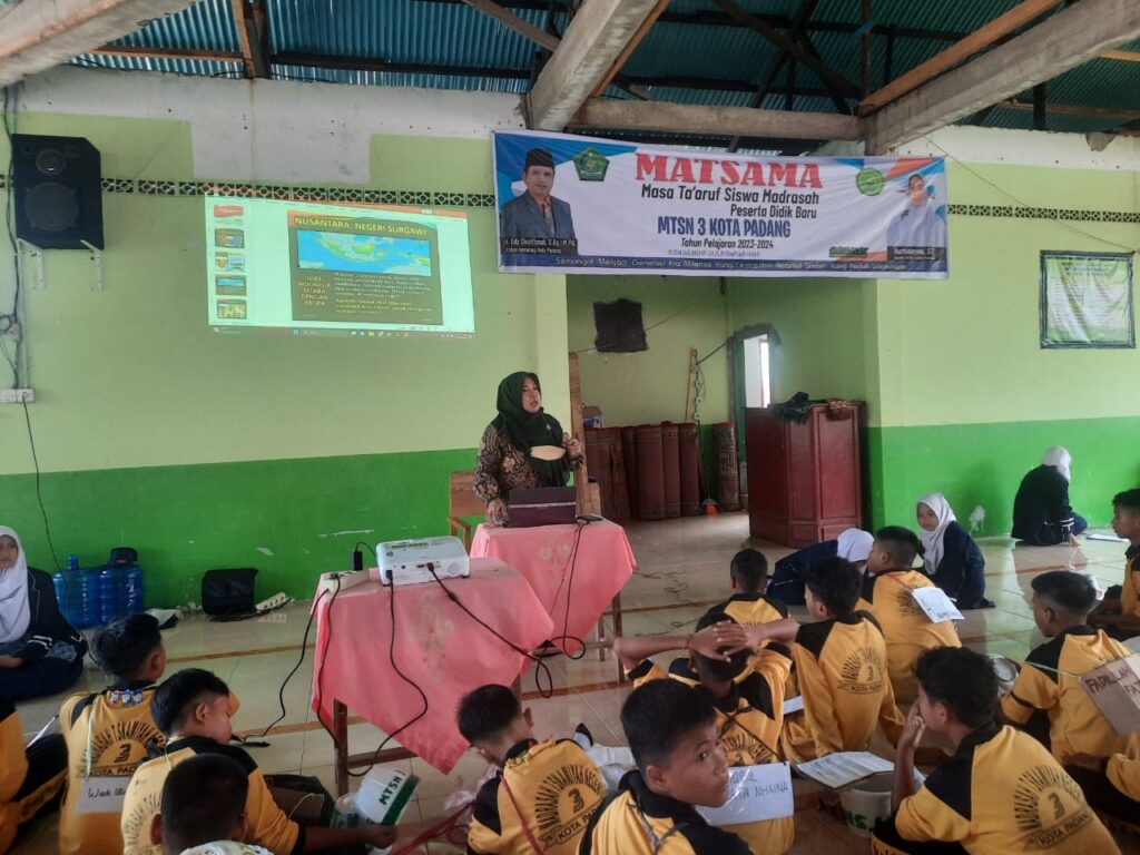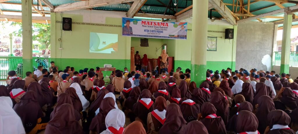 Padang, Humas – Pada hari kedua MATSAMA, siswa baru MTsN 3 Kota Padang, mendapatkan materi wawasan kebangsaan oleh Analis Kebijakan Ahli Muda Seksi Kasi Bina Paham Keagamaan dan Kepustakaan Islam Bidang Urais Kanwil Kemenag Sumbar Dr. H. Yasril, S.Ag., MA, di Masjid Nurus Sakinah, Rabu (12/07).