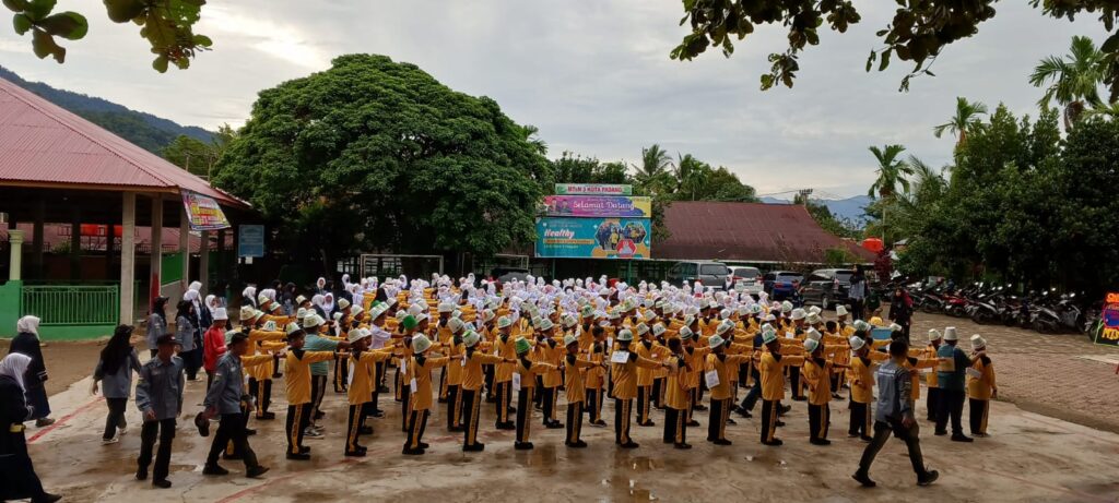Sebelumnya siswa kelas VII MTsN 3 Kota Padang juga telah mendapatkan latihan pasukan baris-berbaris (PBB), dan materi kebangsaan oleh Kepala Urusan Tata Usaha, Desi Arisanti. (AA. Foto: AA)